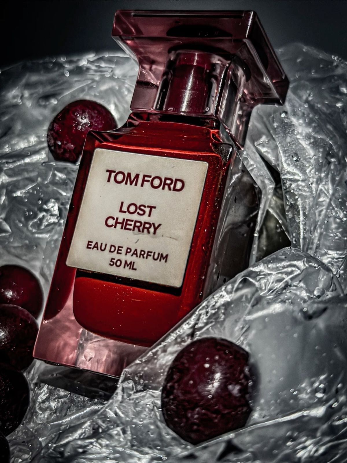 Lost Cherry mở màn bằng một ly rượu Anh đào. Quả Anh đào đen ngọt dịu, lên men râm ran và mê dại, tạo nên những rung động lâng lâng trong khoang mũi người thưởng thức, một cảm giác “boozy” cân bằng và nền nã. Đủ ngọt, đủ tê, êm ái và dịu dàng, tạo nên một màn trình diễn có lẽ là hay ho và đáng chú ý nhất với tôi trong mùi hương Lost Cherry. Trôi qua một khoảng thời gian, quả Anh đào không không hề “lost”, mà chuyển qua một trạng thái có lẽ quen thuộc hơn một chút, đặc biệt là với những người yêu thích mùi Thuốc lá, ấy là một thứ gì đó rất giống với “combo Cherry – Tobacco” quen thuộc. Anh đào hơi chua nhẹ, mang một chút hơi thở sang trọng, hòa quyện cùng cái khô ngậy của Hạnh nhân khiến vài người hơi có chút liên tưởng tới Thuốc lá, âm ỉ múa lượn uyển chuyển. Hạnh nhân đúng là một mùi hương khô, nhưng ngậy bùi, không đem lại cảm giác phức tạp, tăm tối giống như Thuốc lá, vẫn tròn trịa vẽ tiếp bức tranh gợi cảm quyến rũ tổng thể. Dần về cuối, trái Anh đào dần hòa mình vào chiếc bánh kem, và Lost Cherry chuyển mình thành một mùi hương ngọt ngào, bằng sự góp mặt của Vanilla và Đậu Tonka, một sự kết hợp “béo ngậy” quen thuộc, nhưng vẫn tinh tế và có thần thái riêng bên Nhựa hương đang âm ỉ cháy. Dù được Tom Ford gắn nhãn là một mùi hương phi giới tính, nhưng những gì mà Lost Cherry thể hiện hoàn toàn chứng minh, đây là một chân ái dành cho phái đẹp.